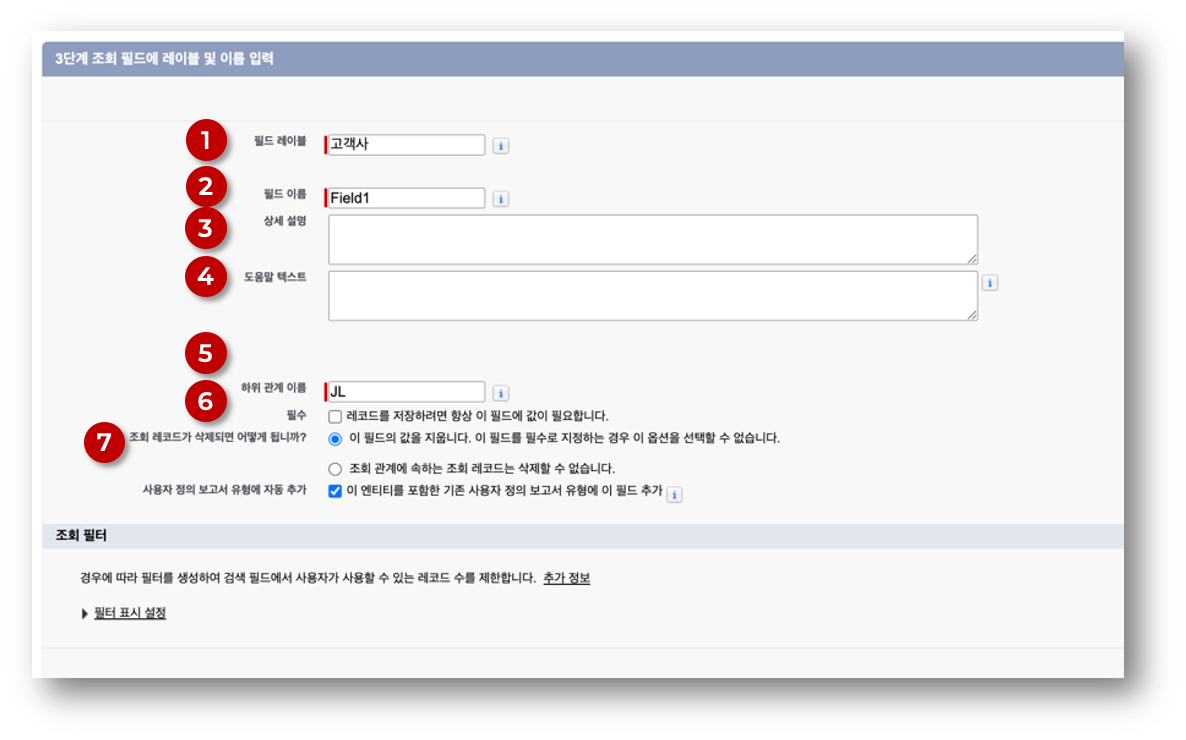 - 3단계 조회 필드에 레이블 및 이름 입력
